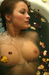 Le chaton bombastique bénéficie d'un bain floral séduisant comme elle joue dans l'art de l'art rencontré Adelina