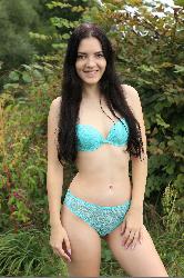 Le magnifique modèle dénonce sa lingerie bleue assortie au bord du lac et découvre son magnifique cul de pêche et ses magnifiques seins à Domai Ensemble Anie Darling 3