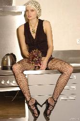 Le modèle mignon descend sa robe courte et découvre une douce arrachure manuturée et des mamelons roses dans le métart de l'UNA