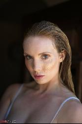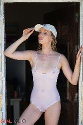 magnifique hottie blonde anuska montrant sa figure dans une combinaison de baignade à Girlfolio Set Gardez votre chapeau sur