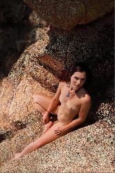 Modèle brune jeune et douce met artistiquement son corps parfaitement façonné et ses seins magnifiques avec des mamelons rosé à l'extérieur dans les studios mpl sets des coins et des crannies