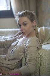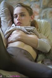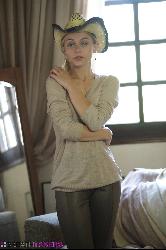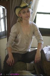 Naughty Petite Blonde clignotant ses seins avantageux sous sa chemise dans les soufflets Set cowgirl