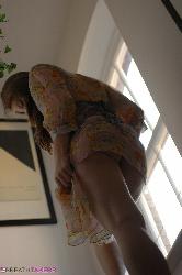 Nymphette jeune laissant la lumière du soleil toucher sa peau sans défaut dans les soufflets se mettre en photo