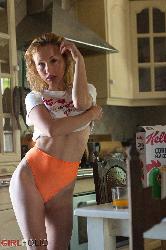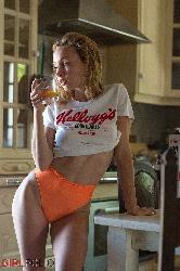 Petite blonde cutie taquineries dans une culotte mignonne dans la cuisine de Girlfolio Set Un week-end avec Lena # 2 - Petit déjeuner avec Lena