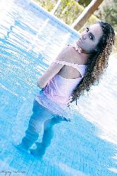 Petite Brunette Cutie Natation Topless dans sa piscine de jardin à Hayleys Secrets Ensemble Magic Minnie