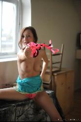 Petite Sophia Smith clignotant sa culotte rose sous la tenue de la robe de soie bleue dans les époustoures
