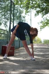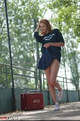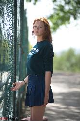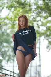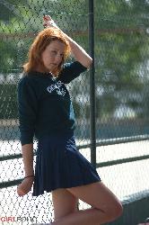 Pom-pom girl athlétique utilisant son corps en forme et les cheveux rouges pour la séduction dans les pom-pom girls Set de pom-pom girls ok!