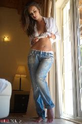 Poupée Foxy Cacher ses mamelons brunâtres sous une chemise blanche à Girlfolio Ensemble Jeans de petit ami