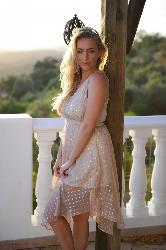 Princesse blonde romantique Stripping lorsque le soleil se couche dans les secrets de Hayleys Secrets Set Hayley Sunset