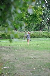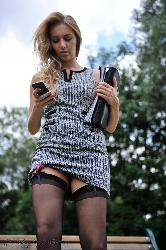 Robe serrée contenant à peine le corps curvacée d'une blonde dans des secrets de Hayley Secrets Ensemble de Parc Déjeuner Date