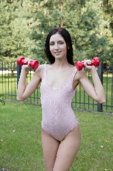 Sexy Babe aux cheveux noirs est juste fait avec sa formation car elle se fait nue clignotant ses atouts dans le métarde Set Démarrer la journée