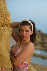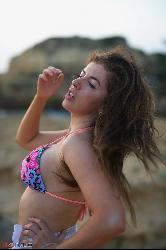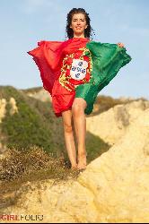 Sirène curvy enroulant un drapeau autour de sa silhouette torrentielle dans Girlfolio Set Portugal Beach Shoot