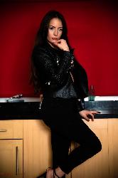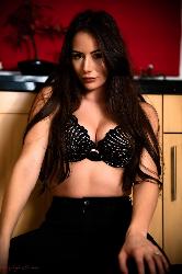 Superbe brune chérie posant nue dans des talons noirs à lanières à Hayleys Secrets Ensemble tout moment maintenant