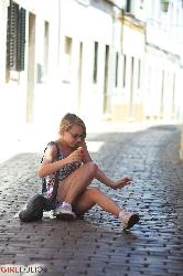 Tempéras flamboyante dégoulinant du jus d'orange sur sa langue rosée dans les oranges et la crème glacée