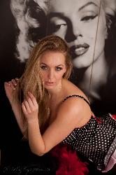 Tempéras Pin-up libérant ses seins de la lingerie en pointillé à Hayleys Secrets Set Strip pour vous