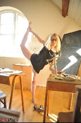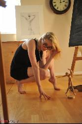 Un professeur blonde vilain se déshabille lors de ses cours privés dans Girlfolio fixant le professeur d'art
