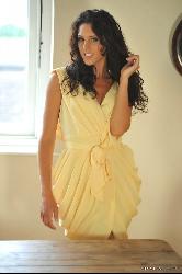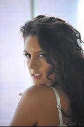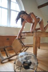 Une hottie séduisante aux cheveux noirs sert elle-même dans des culottes blanches pour le dîner dans les époustoures set parfaitement